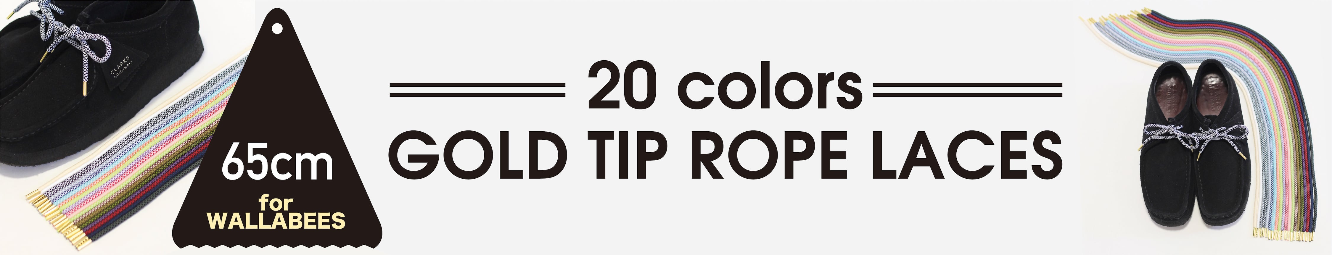 長さ65cm、GOLDチップのROPE LACES。 シューホールの数が少ないスニーカーやワラビーに最適。 カラフルな挿し色、アッパーに馴染む同系色など豊富な20色のカラーバリエーション。 ※画像1枚目のシューズに通しているのがBLACKカラーになります。 ブーツがスニーカーライクな印象になるのが楽しいです。 ぜひチャレンジしてみて下さい。 着用時の参考画像はこちらから↓ https://getabaco.official.ec/blog/2025/04/01/223042 ・日本製 -------------------------------------------------------------------- ※普通郵便での配送になります。 ※追跡不可。土日祝日の配達はありません。 ※発送から土日祝日を除いた3〜7日ほどでのお届けになります。