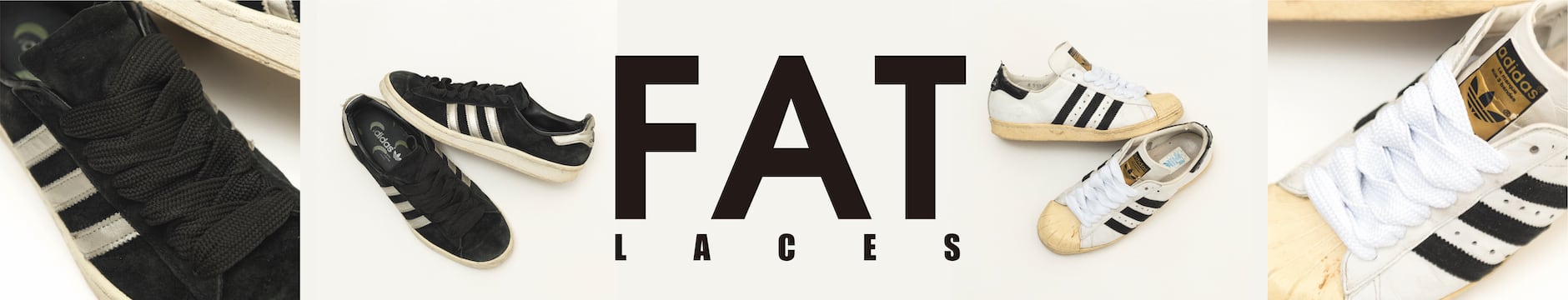 紐幅2.5cmのファットレース。 カラーはWHITEとBLACKの2色展開。長さは120cmです。 光沢があり、軽いポリエステル糸を使用しています。 80'sのB-BOYが「自分は他人と違う」という自己主張に使えるアイテムとして活用したところから広まったFAT LACES。 それは現代でも新鮮に写るアイテムです。同じスニーカーの印象がガラリと変わります。 ぜひお試し下さい。 肝心な通し方ですが、強く引っ張らずにフワッと軽く紐を通すのがGETABACO推奨の通し方です。 ・蝶々結びをする場合は、シューホール片側5つぐらいに通した後に結ぶとバランスの良い長さの結び目ができます。 ・蝶々結びをしない場合は、シューホールに通した後、最後に玉留めのように1本で結び目を作り紐が抜けないようにします。余った紐が気になる場合にはハサミでカットして、ほつれ部分をライターで軽くあぶると溶けて固まります(ハサミ、ライターはケガや火傷にお気をつけ下さい。また、シューズを傷つけないようにお気をつけ下さい。これらはあくまで自己責任で加工して下さい)。 ・中国製 -------------------------------------------------------------------- ※普通郵便での配送になります。 ※追跡不可。土日祝日の配達はありません。 ※発送から土日祝日を除いた3〜7日ほどでのお届けになります。