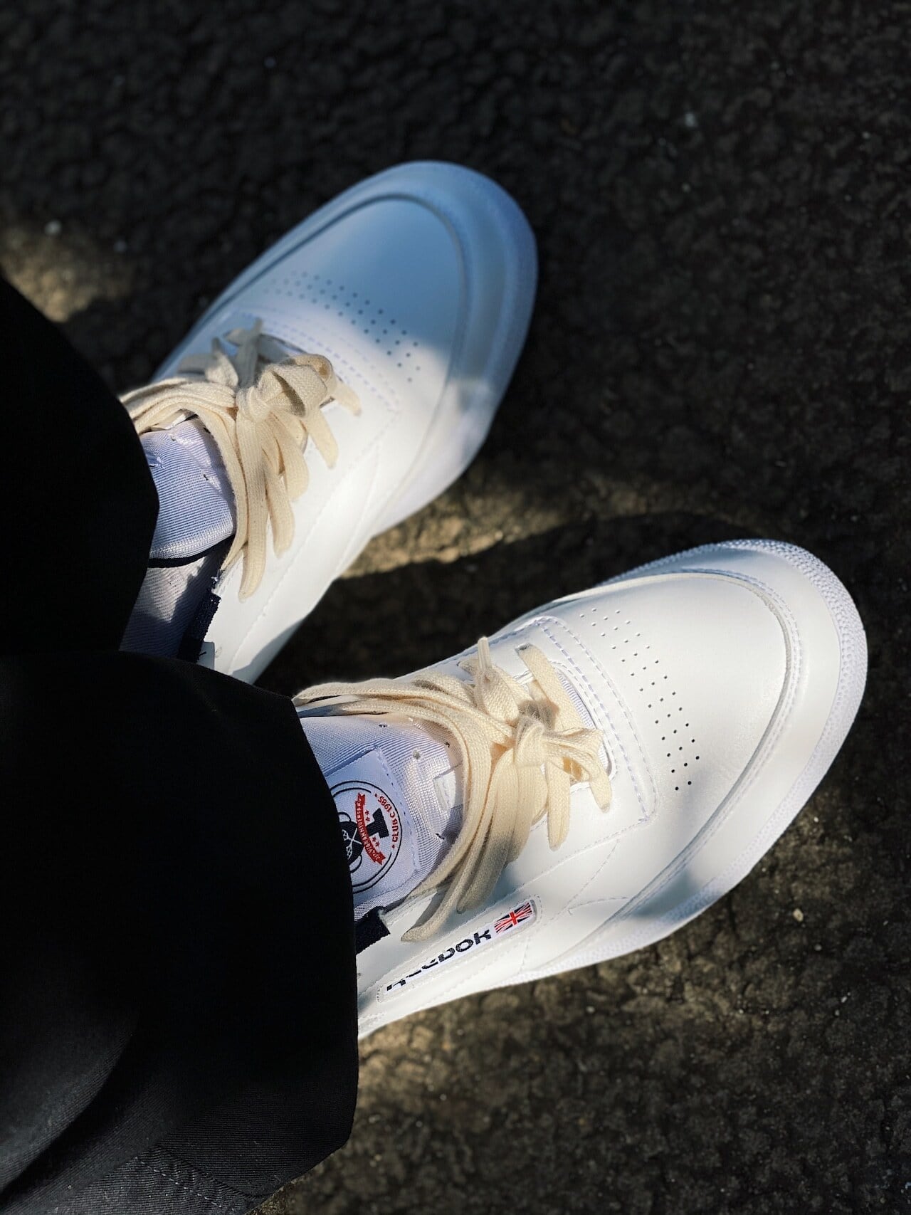 コットンならではの柔らかな質感で、スニーカーも優しい印象に。