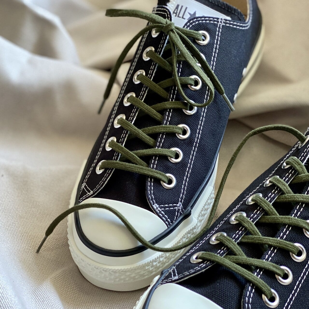 一般的なシューレースよりも細めの5mm幅にする事により、スニーカーが引き締まった表情に仕上がります。