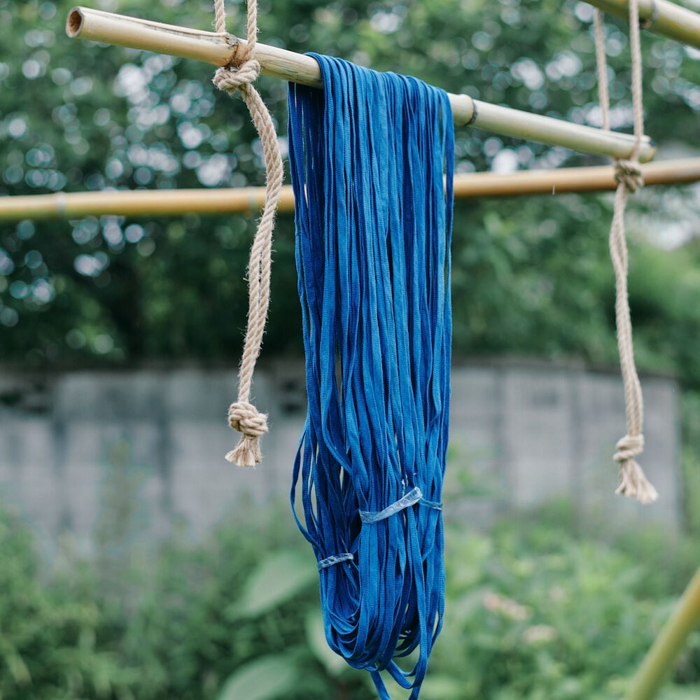 藍染風布(あいぞめふうぷ)の丹羽さんとのコラボレーションにて"藍染シューレース"が誕生しました。