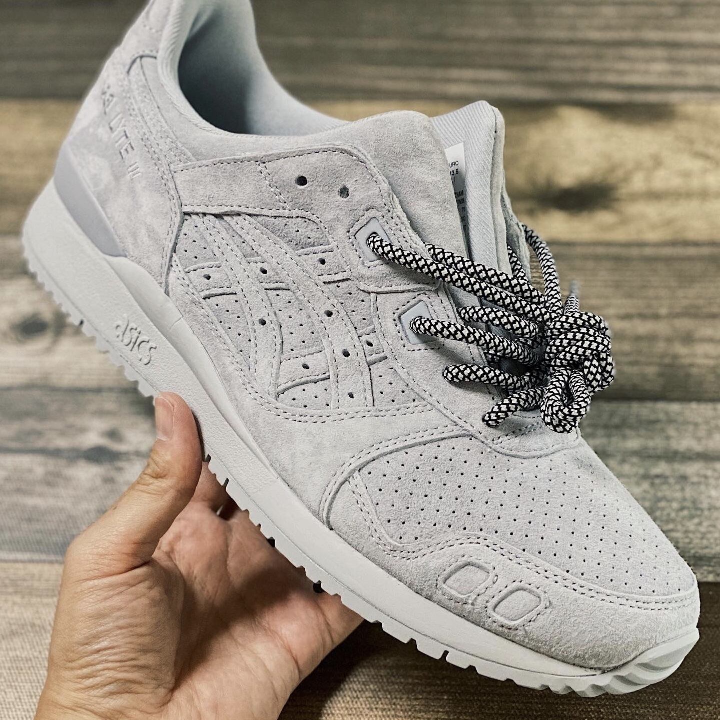 オーソドックスな平紐から変えるだけで驚くほどにスニーカーの印象が変わります。