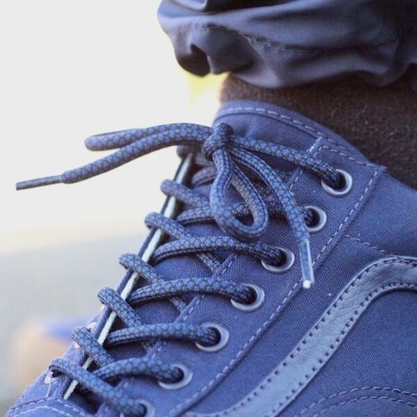 ブラックとネイビーの2色のカラーを組み合わせて編み込んだ丸紐"ROPE LACES"。