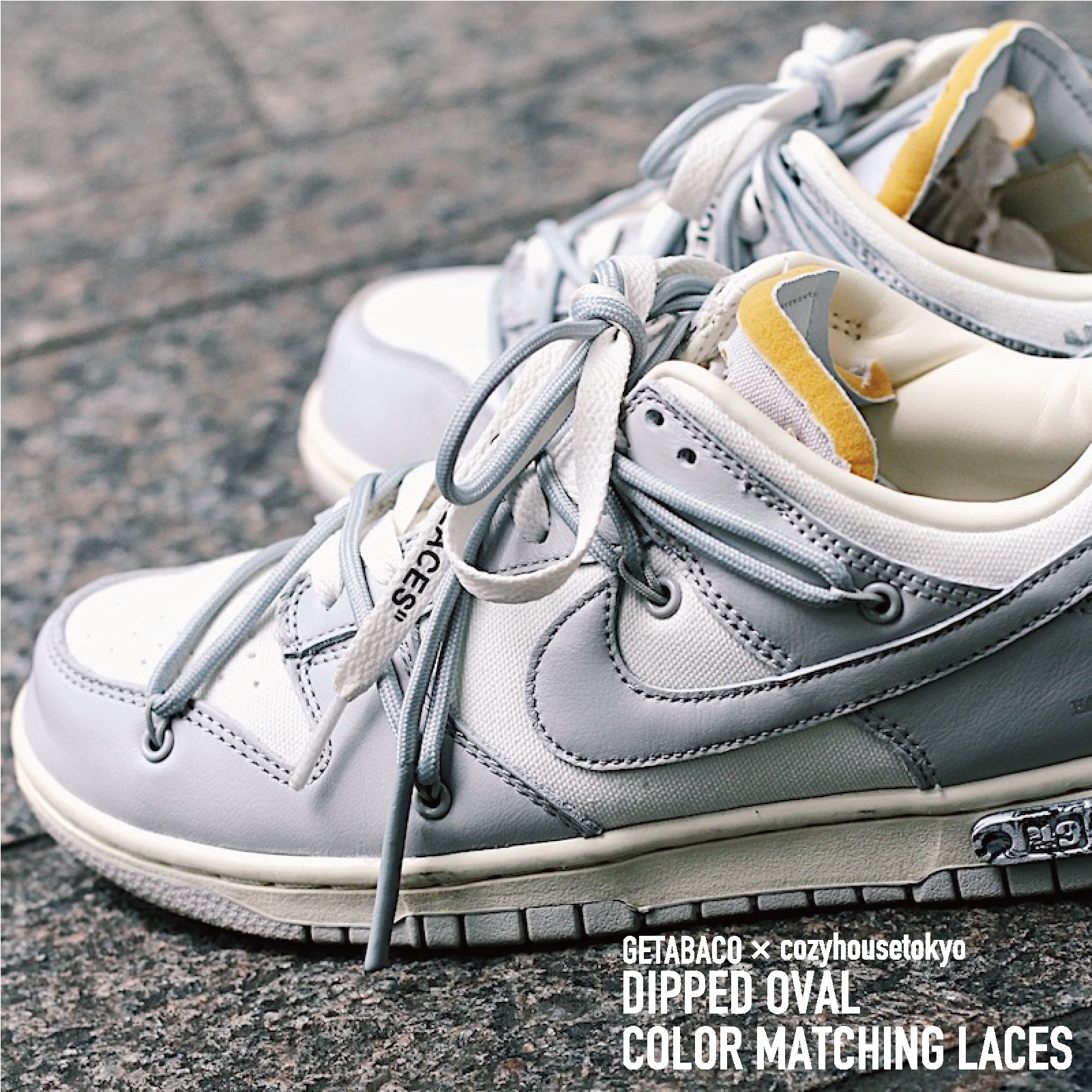 GETABACO × cozyhousetokyo DIPPED OVAL COLOR MATCHING LACES [GREY]