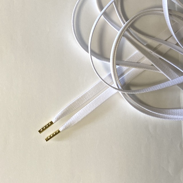 WHITEの日本製の幅8mmのワックスコットンレース。 先端のチップをGOLDのメタルチップにする事でラグジュアリーな雰囲気に。 ワックスコットンを使用し、スポーティーな印象から上品な雰囲気にイメージチェンジが可能です。 ・65cm/120cm/160cm/175cmのバリエーション。お持ちのシューズに合った長さをお選び下さい。 ・日本製 -------------------------------------------------------------------- ※普通郵便での配送になります。 ※追跡不可。土日祝日の配達はありません。 ※発送から土日祝日を除いた3〜7日ほどでのお届けになります。